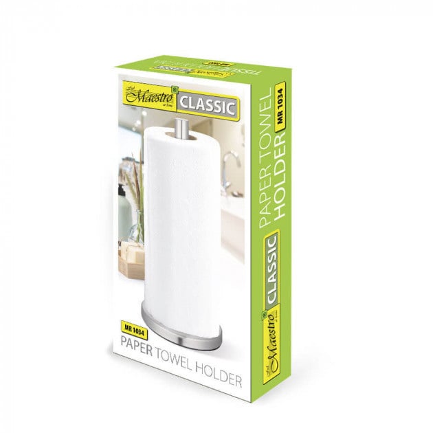 Утримувач паперових рулонних рушників простий та надійний, буде гармонійним доповненням до Вашого інтер'єру. Ця модель чудово підходить для використання на кухнях (в зонах приготування їжі), у лабораторіях. Тяжка основа робить тримач стійким.