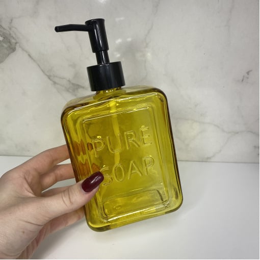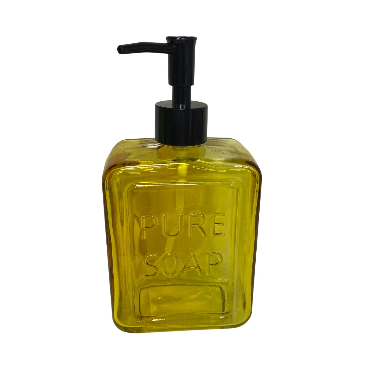 Дозатор скляний для антисептика та рідкого мила 560 мл S&T 888-19 із чорним дозатором жовтий Ємність для рідкого мила, гелю для душу, лосьйону високої якості. Механічний діспенсер зі скла – дуже стильний, красивий та естетичний варіант доповненням для ванної кімнати, що виконує також свою основну – практичну функцію. Виготовлений із товстого декорованого скла, має надійний механізм тиску. Характеристика: Тип: Дозатор Матеріал: Скло Об'єм: 560 мл Колір: Жовтий Висота: 19 см Розмір: 10*6 см