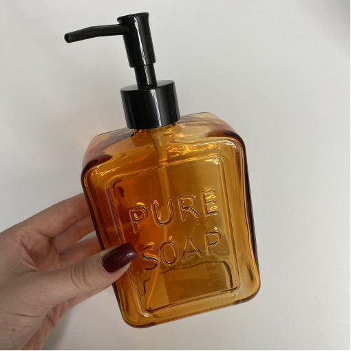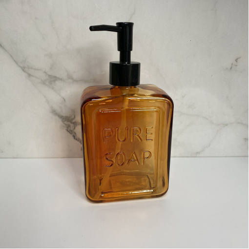 Дозатор скляний для антисептика та рідкого мила 560 мл S&T 888-19 із чорним дозатором помаранчевий