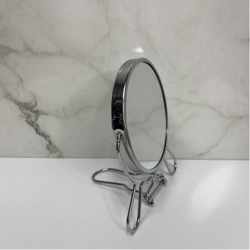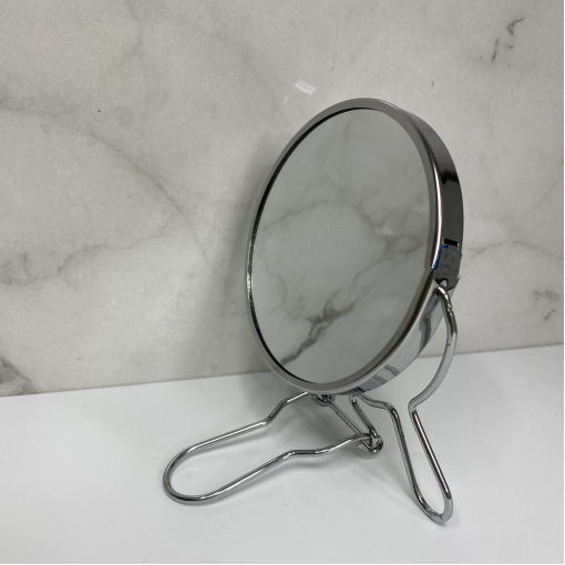 Дзеркало – це потрібний атрибут для щоденного використання. Кругле, двостороннє настільне дзеркало Two-Side Mirror має металеву оправу та опору, що дозволяє регулювати кут нахилу дзеркала. Дзеркальна пластина з одного боку збільшує зображення, з іншого показує природні розміри. Одна сторона дзеркала є стандартним дзеркало. Друга – має п'ятикратний ефект, що дозволяє проводити косметичні процедури по догляду за обличчям. Відмінна риса моделі – здатність дзеркальної поверхні обертатися на 360 градусів. Завдяки сучасному ергономічному дизайну дзеркало впишеться у будь-який інтер'єр. Це стильне дзеркало стане незамінним помічником для тих жінок, які вважають за краще виглядати чарівно завжди.