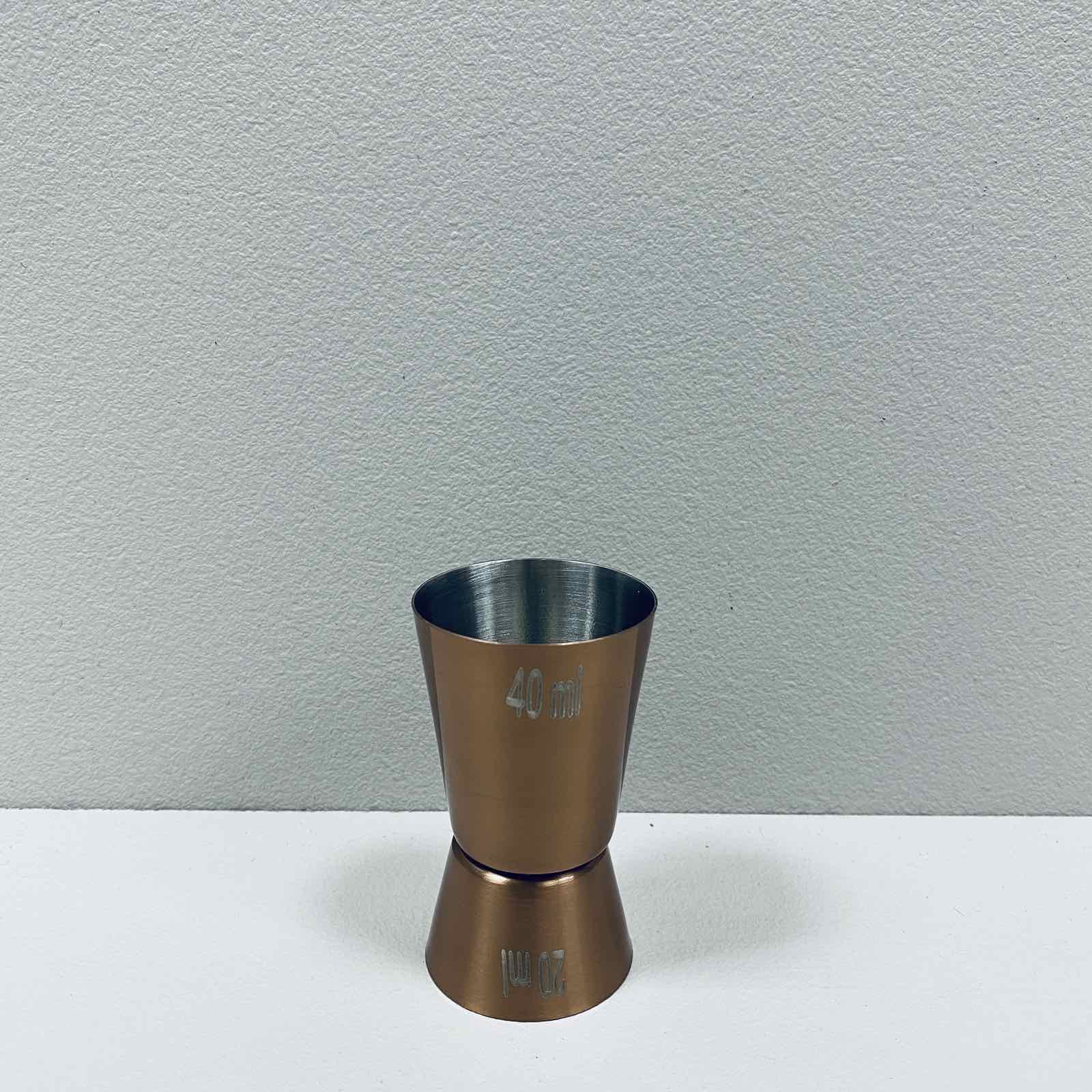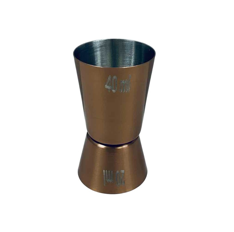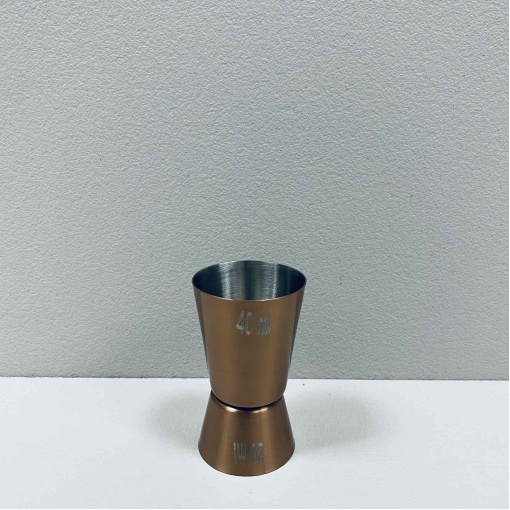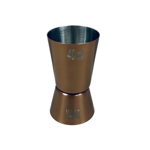 Джиггер з нержавіючої сталі 20/40 мл Empire EM-7907 Джиггер - спеціальний мірний стаканчик для рідин, використовується барменами для контролю кількості інгредієнтів, що додаються в коктейль. Характеристика: Вид: Джиггер Матерыал: Нержавіюча сталь Об'єм: 20/40 мл Висота: 7см Колір: Бронзовий