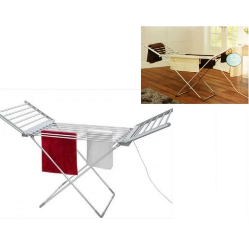 Електрична сушарка для білизни призначена для швидкого та ефективного сушіння білизни та одягу. Сушарка виявиться незамінним помічником за вологої погоди або в холодний зимовий період. Мобільна та стійка конструкція сушарки забезпечує компактність та безпеку її використання. Сушарка ідеальна для маленьких приміщень, тому що її можна скласти. Незамінна для швидкого сушіння тонкої білизни. Електрична сушарка для білизни 148 x 54 x 93 см A-PLUS 349 (288118) Характеристики: Тип: електросушарка для підлоги; Вид: із крилами; Матеріал: алюміній; Конструкція, що розкладається; Напруга живлення: 220 В, 50 Гц; Режимів потужності 1; розміри: довжина - 148 см., ширина - 54 см., висота – 93 см.; Температура нагрівання 45-65 градусів; Максимальне навантаження 15 кг; Максимальна потужність: 230 Вт; Стійкі ніжки.