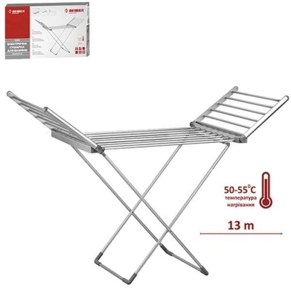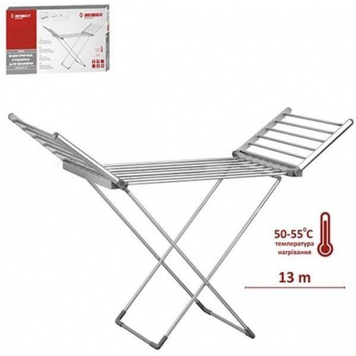 Електрична сушарка для білизни призначена для швидкого та ефективного сушіння білизни та одягу. Сушарка виявиться незамінним помічником за вологої погоди або в холодний зимовий період. Мобільна та стійка конструкція сушарки забезпечує компактність та безпеку її використання. Сушарка ідеальна для маленьких приміщень, тому що її можна скласти. Незамінна для швидкого сушіння тонкої білизни.