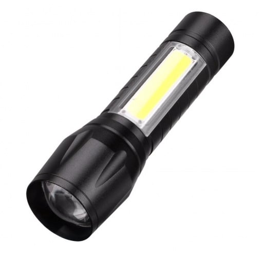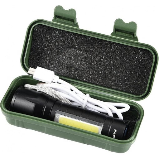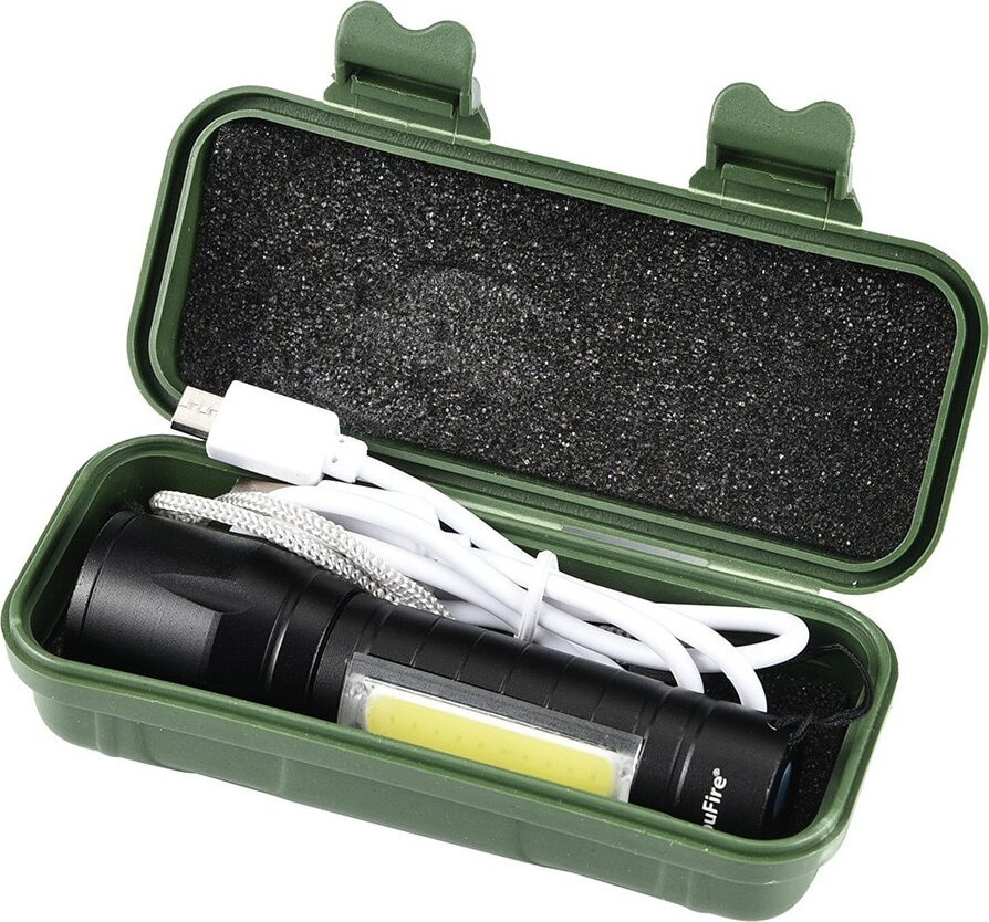 Потужний ліхтарик з регульованим зумом пучка світла та трьома режимами свічення в компактному, вологозахищеному та удароміцному металевому корпусі з алюмінієвого сплаву. Має кілька режимів свічення та економічне підсвічування COB (Chip On Board). Заряджається за допомогою кабелю USB.