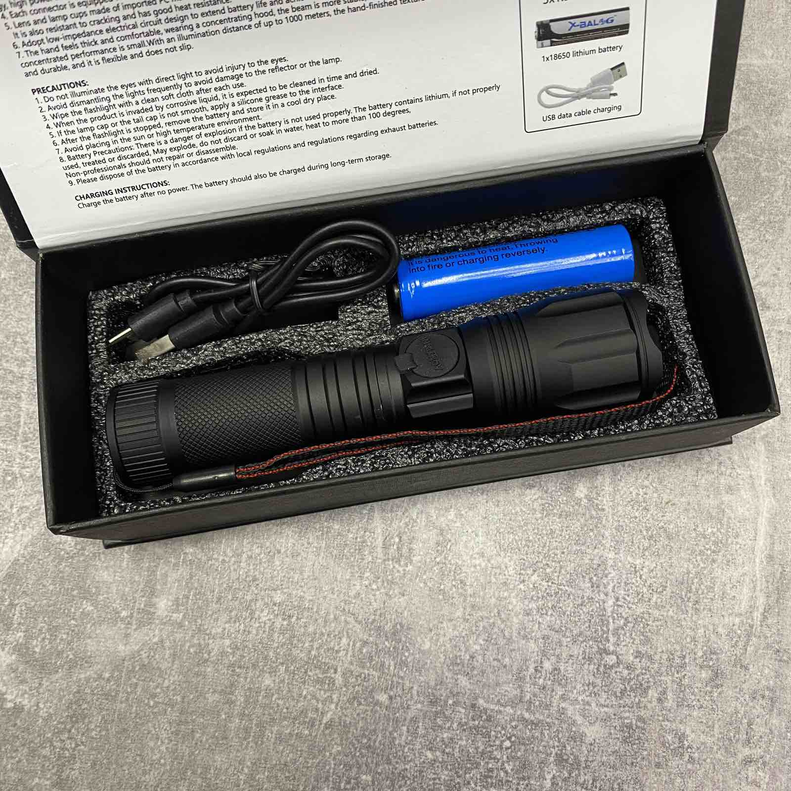 Комплектація: Ліхтар, шнур для заряджання
