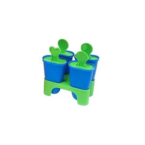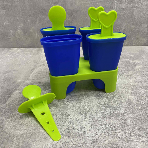 Форма для морозива відрізняється веселим дизайном та практичністю. Набір складається з основи і чотирьох формочок для фруктового льоду або морозива. Кожна форма має кришку з декоративною ручкою-паличкою. Такі форми - відмінне рішення для заморожування води, соку, соусів, а також створення цукерок із шоколаду. Харчовий матеріал без запаху не виділяє хімічних речовин навіть при дуже високих і низьких температурах.