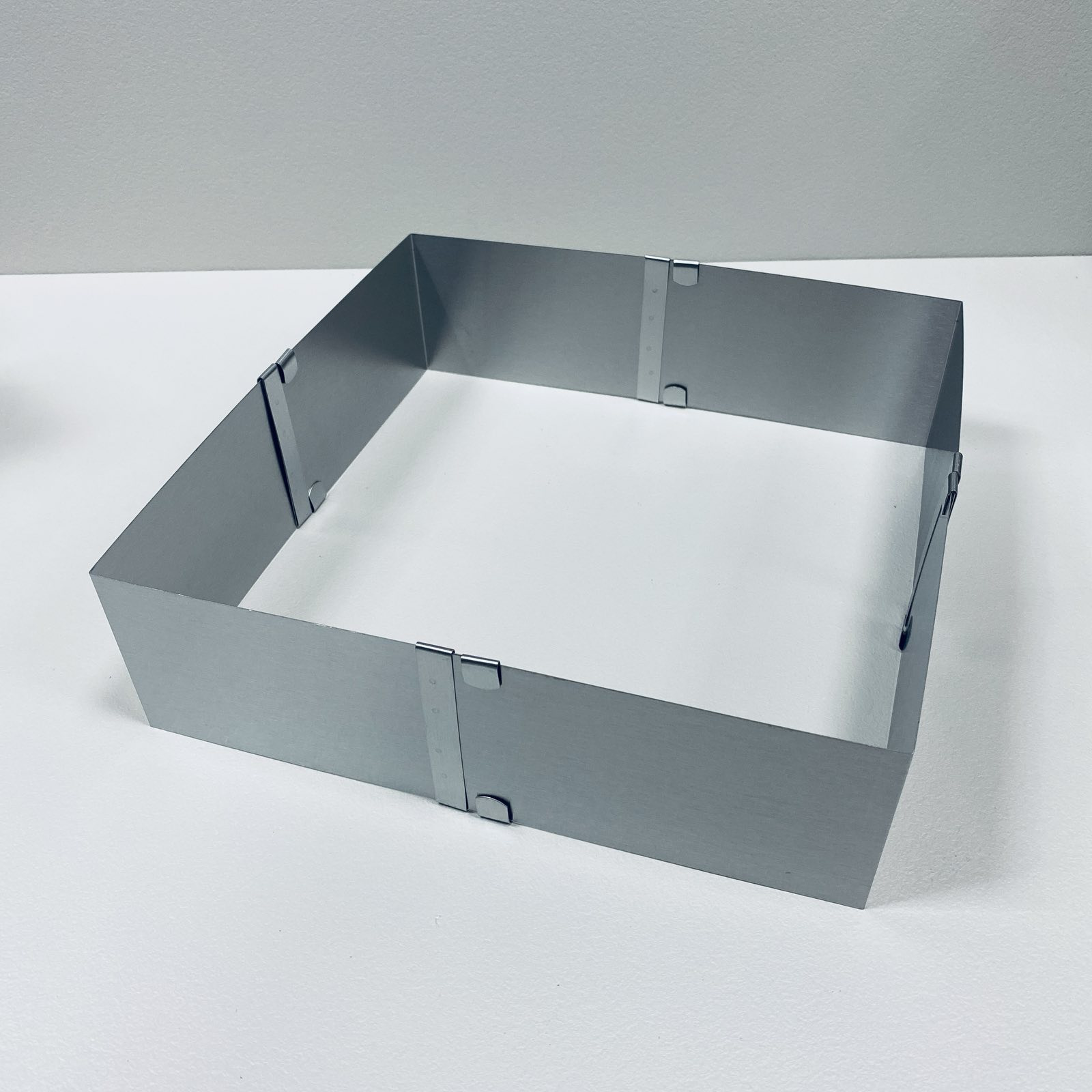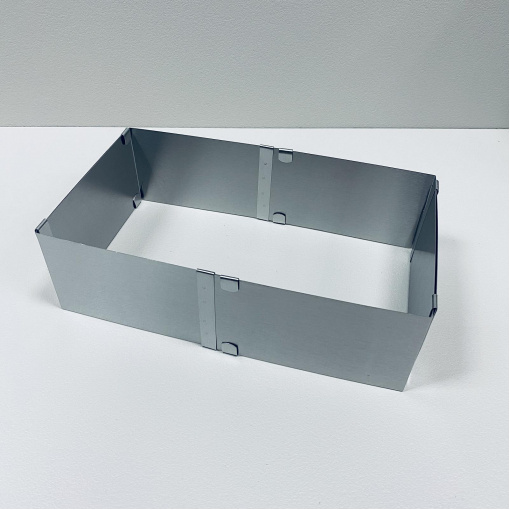 Форма для випікання з нержавіючої сталі розсувна "Квадрат" 15-28*8 см Stenson R92416 Розсувна форма дозволяє замість цілого комплекту форм різних розмірів, придбати одну, що економить кошти та місце на полиці. Квадратна може бути використана як форма для збирання тортів, форма для випічки, форма для заливання желе, суфле та мусів. Форма виготовлена з нержавіючої сталі та забезпечена роз'ємними замками, що дуже зручно, тому що Вам не доведеться мучитися, щоб витягти готовий виріб із форми. Характеристика: Вид: Форма Призначення: Для випікання, збирання тортів Матеріал: Нержавіюча сталь Розмір: від 15 до 28 см Висота: 8 см Форма: Квадратна Колір: Сталевий