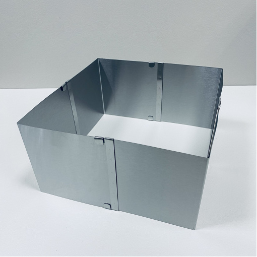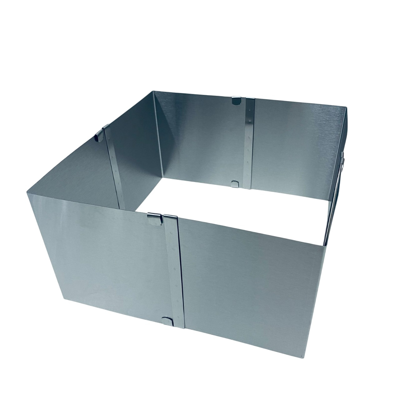 Форма для випікання з нержавіючої сталі розсувна "Квадрат" 15-28*15 см Stenson R92419 Розсувна форма дозволяє замість цілого комплекту форм різних розмірів, придбати одну, що економить кошти та місце на полиці. Квадратна може бути використана як форма для збирання тортів, форма для випічки, форма для заливання желе, суфле та мусів. Форма виготовлена з нержавіючої сталі та забезпечена роз'ємними замками, що дуже зручно, тому що Вам не доведеться мучитися, щоб витягти готовий виріб із форми. Характеристика: Вид: Форма Призначення: Для випікання, збирання тортів Матеріал: Нержавіюча сталь Розмір: від 15 до 28 см Висота: 15 см Форма: Квадратна Колір: Сталевий