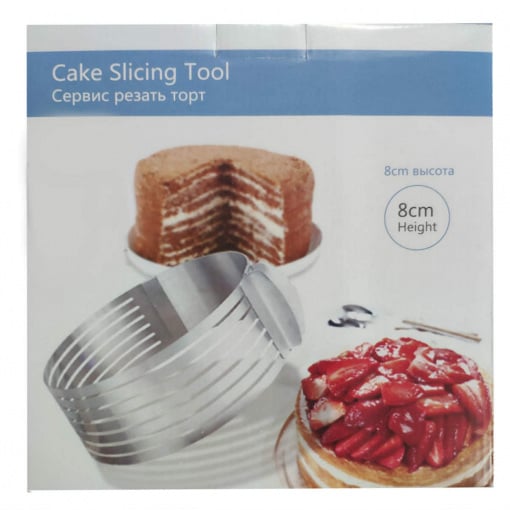 Форма виготовлена ​​з нержавіючої сталі і призначена для рівного розрізання випічки на коржі. Це кондитерське пристосування зручне для використання на домашній кухні та в кондитерському цеху. Коржі нарізаються розміром від 24 до 30 см у діаметрі, завтовшки 1 см. Форма розсувна, підганяється під діаметр бісквіту. Одночасно виходять 6 ідеально рівних коржів. Товар упакований в яскраву коробку. >