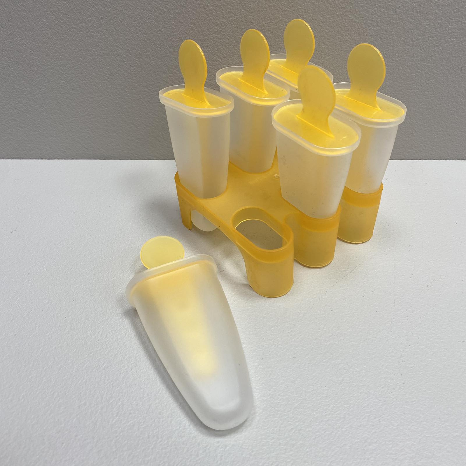 Форма пластикова для морозива Stenson 21107 жовта Призначена для приготування морозива, сорбету та замороженого соку. Щоб готовий продукт добре діставався з форми, необхідно в нижню частину налити теплої води і почекати 1 хв. Для заморожування можна використати фруктові пюре, соки. Інструкція застосування: перед першим застосуванням потрібно промити теплою водою з додаванням нейтральних миючих засобів (дитячого мила і т.д.), потім ретельно сполоснути чистою водою. Попередження: оглядайте перед та після кожного використання, переконайтеся, що вони є неушкодженими. У разі пошкодження – утилізувати. Характеристика: Форма для морозива Матеріал: Пластик Виробник: Stenson
