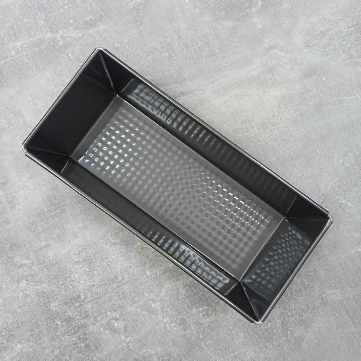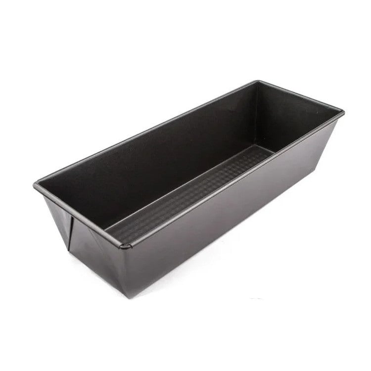 Прямокутна форма для випікання хліба підходить для домашнього хлібного виробництва та мініпекарень. Виконана з вуглецевої сталі, відрізняється високою міцністю та зносостійкістю. Ця сталь має дрібнозернисту структуру, що забезпечує стійкість до дії високих температур. Форма для випікання з вуглецевої сталі швидко та рівномірно нагрівається, вона легка, міцна та довговічна. Двошарове чорне антипригарне покриття дозволяє використовувати мінімум жирів. Форму запікання можна використовувати для приготування випічки, запікання м'яса, овочів і т.д. Антипригарне покриття дозволяє легко витягувати готову страву. Форма для хліба 26x12x7.5 см прямокутна, з усіх боків трохи звужується донизу. Тобто випічка в цій формі виходить у вигляді півцеглини.