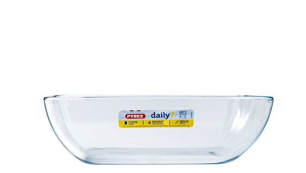 Форма скляна з пластиковою кришкою 3,5л 28*23*9.3 см прямокутна Pyrex Daily 344P000 Форма Pyrex Daily колекція для щоденного використання, що включає основні вимоги до посуду для приготування на кожен день: безпека, довговічність і універсальність! Будь-яка господиня оцінить універсальність цих форм – у них можна готувати в духовці (газової та електричної), мікрохвильовій печі, зберігати приготовлене в холодильнику або морозильній камері, а також використовувати для сервірування столу. Характеристика: Вид: Форма Матеріал: Скло Матеріал кришки: Пластик Об'єм: 3,5 л Розмір: 28*23 см Висота: 9,3 см Форма: Прямокутна Колір: Прозорий