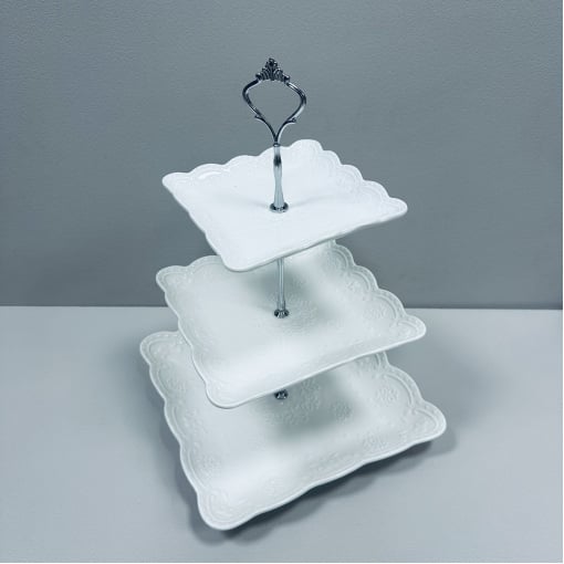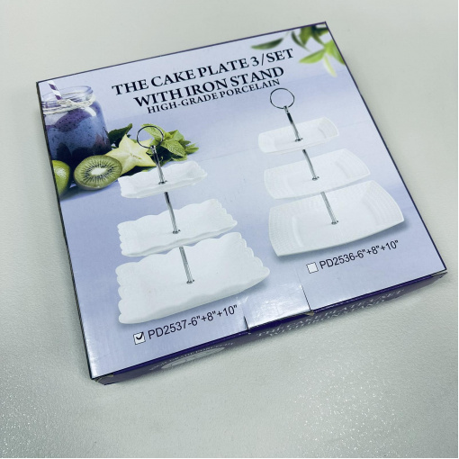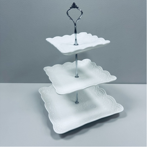 Фруктівниця 3-х ярусна Stenson МС-3664 виготовлена ​​з порцеляни. Матеріал стійкий до перепадів температури та пошкоджень при щоденному використанні. Підійде для щоденного використання та сервірування святкового столу. Характеристика: Вид: Фруктівниця Матеріал: Фарфор Висота: 37 см Колір: Білий Кількість ярусів: 3 Розмір: 15,5х15,5 см, 20х20 см, 25,5х25,5 см Призначення: Для фруктів, солодощів Країна-виробник товару: Китай
