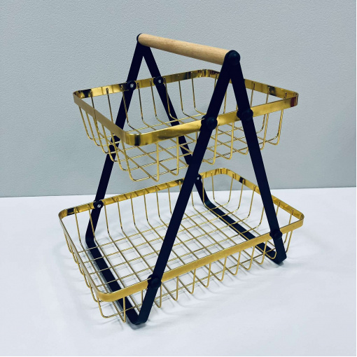 Фруктовниця металева 2-х ярусна Stenson 06-034/4251 30,5 см Чорно-золотий (23676)