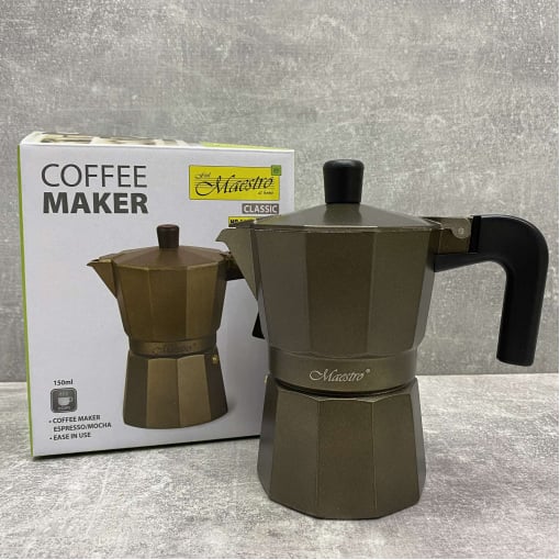 Детальні характеристики Гейзерна кавоварка алюмінієва 150 мл Maestro MR-1666-3 Brown.