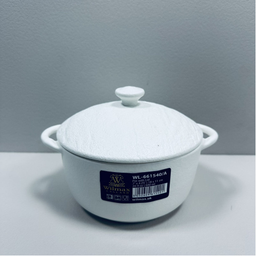 Горщик для запікання з кришкою Wilmax Slatestone WL-661540/A 18см/600мл White