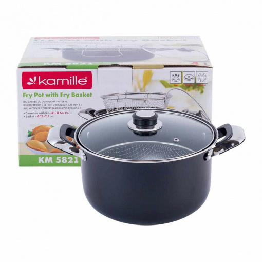 Детальні характеристики Каструля 4 л із сіткою для фритюру Kamille KM-5821.