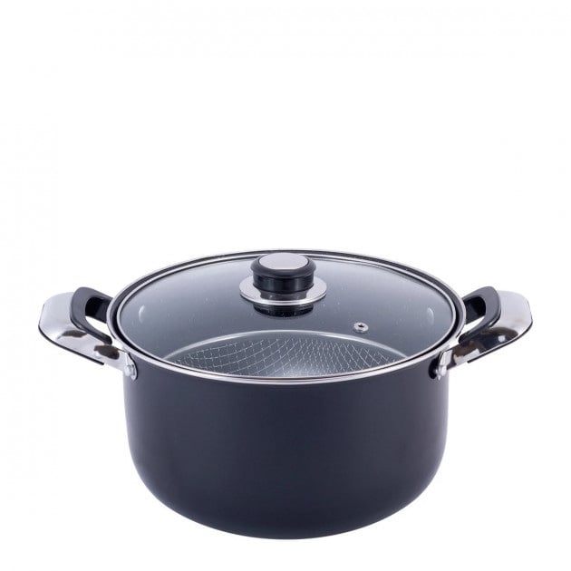 Особливості: виготовлена ​​з вуглецевої сталі з антипригарним покриттям. ідеальна для інтенсивного використання, стійка до зношування відрізняється високою теплопровідністю та розподілом температури, що забезпечує швидке нагрівання та тривале утримання тепла з'єднання ручок виконане клепковим способом на кришці передбачено отвір для виходу пара підходить для всіх видів плит підходить для миття у посудомийній машині