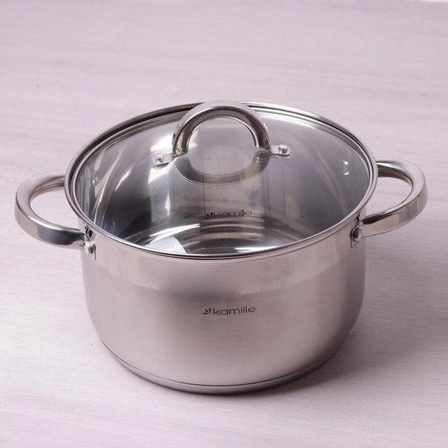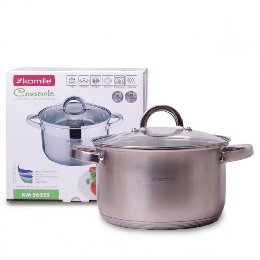 Каструля із нержавіючої сталі 5,1л зі скляною кришкою Kamille Classic KM-5622S