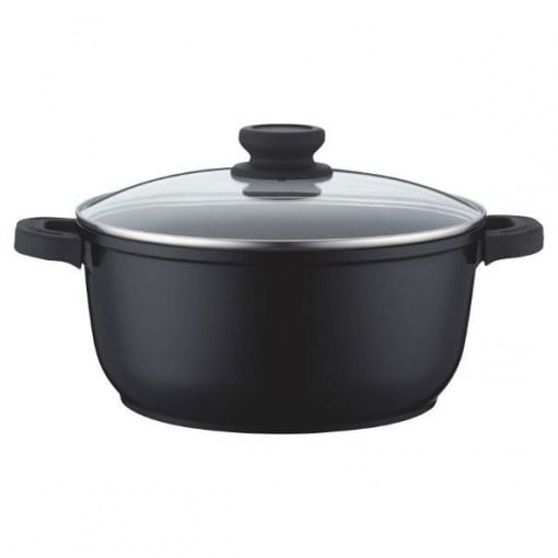 Вид: Каструля Розмір: 24*11,5 см Об'єм: 4.4 л Матеріал: Алюміній Матеріал кришки: Загартоване скло Колір: Чорний Антипригарне покриття: Гранітне Особливості: З ручками, що знімаються, є отвір на кришці для виходу пари.