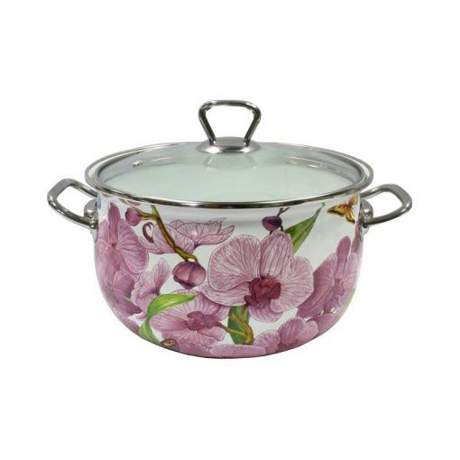 Каструля емальована 5.1 л Орхідея d-22 см Interos 15116-5,1
