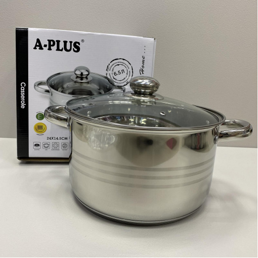 Детальні характеристики Каструля з нержавіючої сталі 6.5 л зі скляною кришкою A-PLUS 2169.