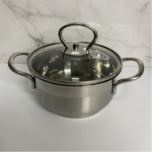 Каструля із нержавіючої сталі зі скляною кришкою 14 см 0.9 л Maestro MR-3508-14