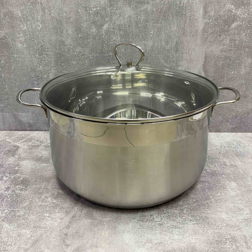 Вид: каструля Матеріал: Нержавіюча сталь Матеріал кришки: Скло Об'єм: 7 л Діаметр: 26 см Колір: Сталевий Форма: Кругла