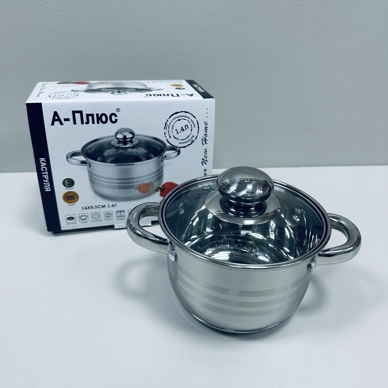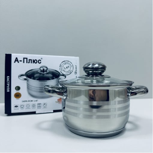 Каструля з нержавіючої сталі зі скляною кришкою 1,4л A-Plus 2164