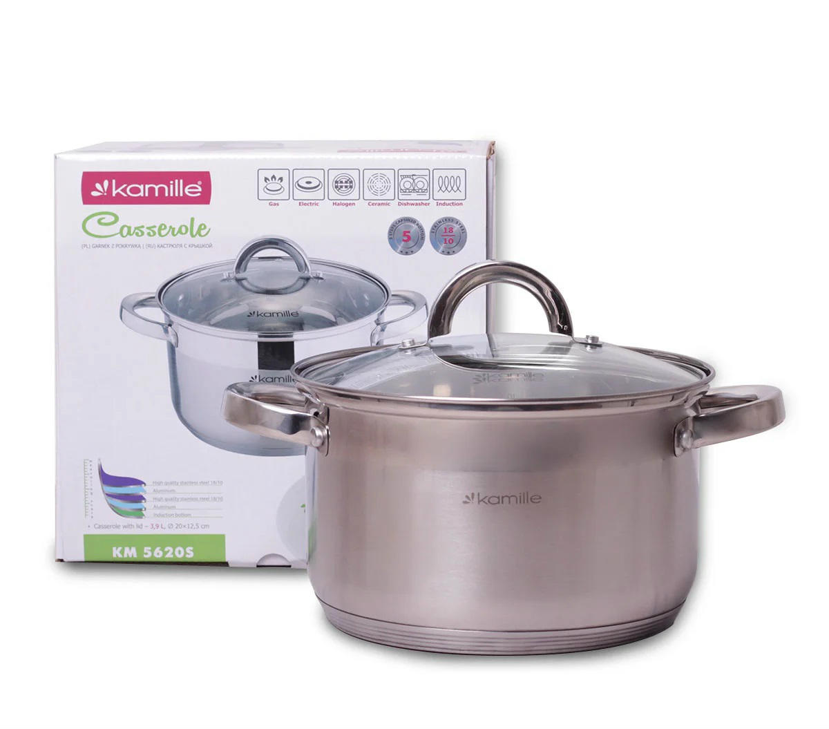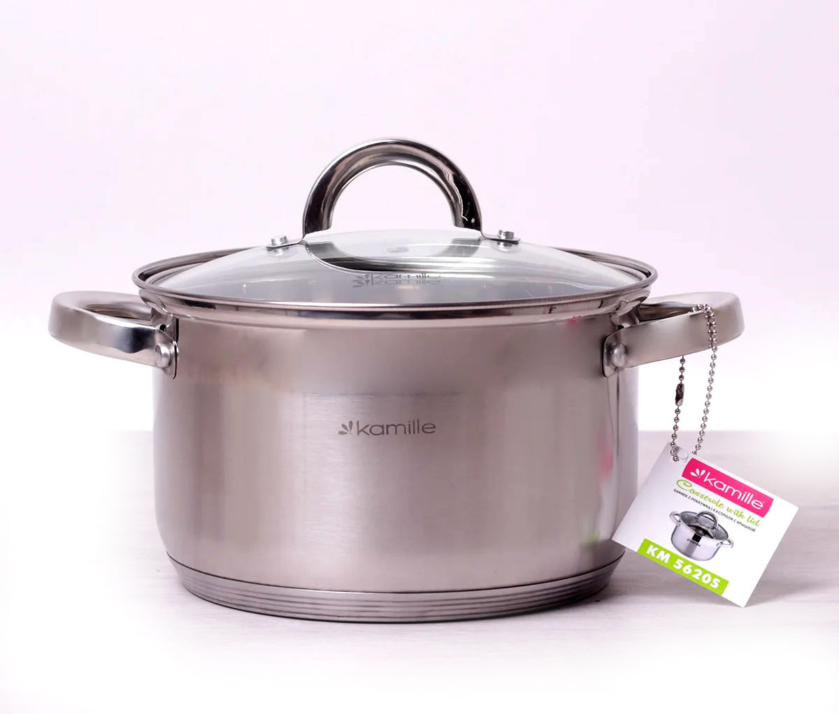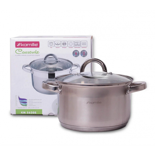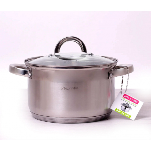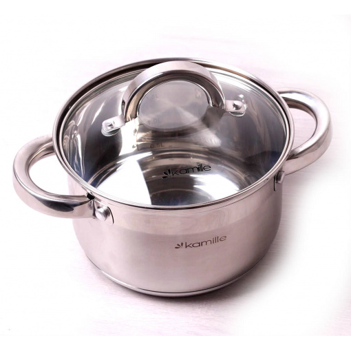 Каструля Kamille 4 л. з нержавіючої сталі з кришкою та порожнистими ручками KM-5620S