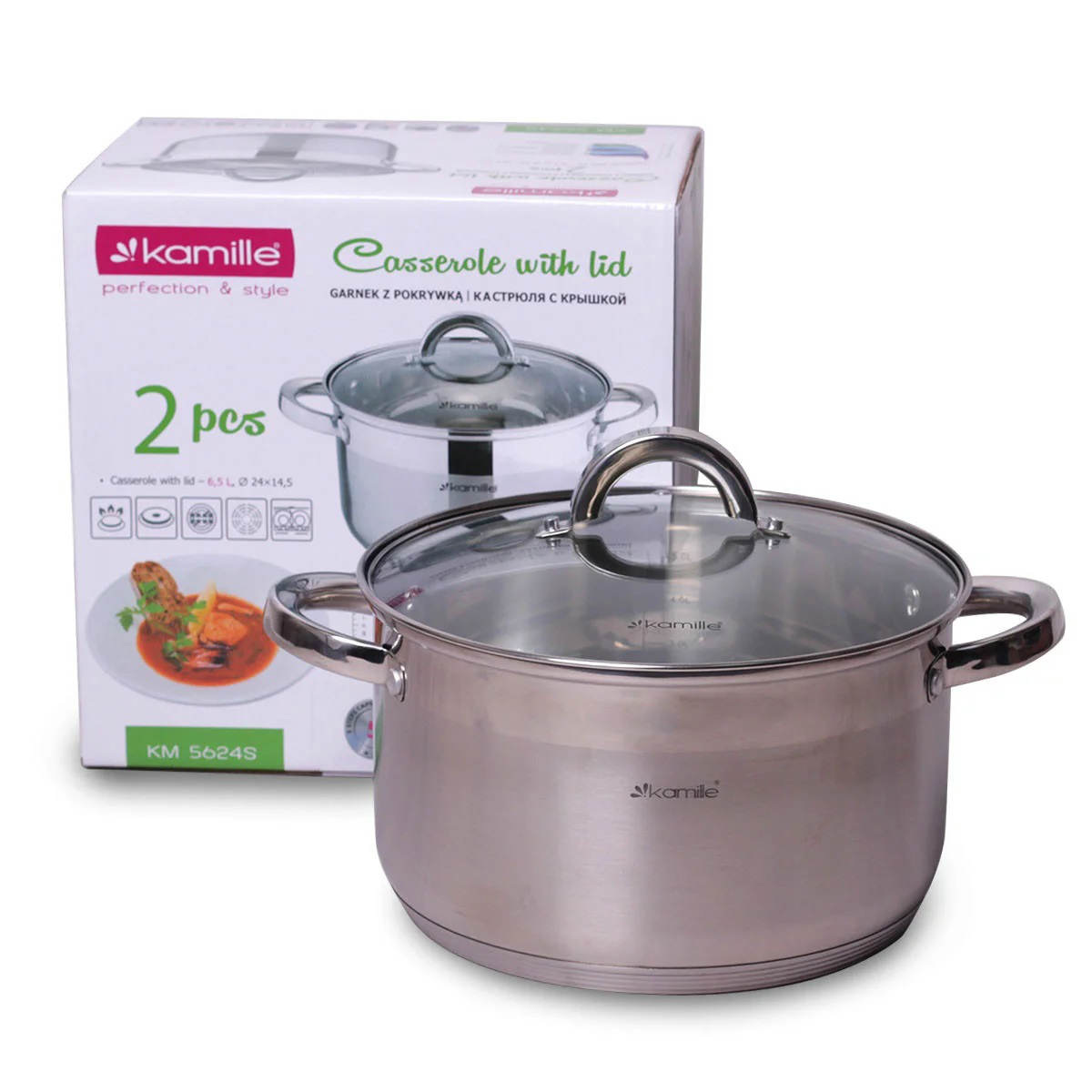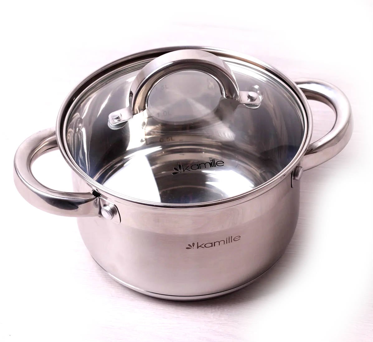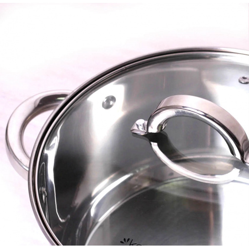Каструля Kamille 5.8 л. з нержавіючої сталі з кришкою та порожнистими ручками KM-5624S