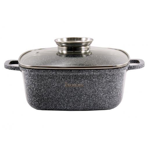 Каструля з мармуровим покриттям 5.4 л Zauberg ZB-1226Каструля торгової марки Zauberg, виготовлена з високоякісного литого алюмінію та має внутрішнє та зовнішнє мармурове покриття. Така каструля швидко нагрівається та рівномірно розподіляє тепло. Має жароміцну скляну кришку з паровідведенням та зручною ручкою.
