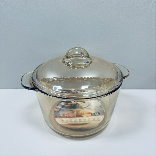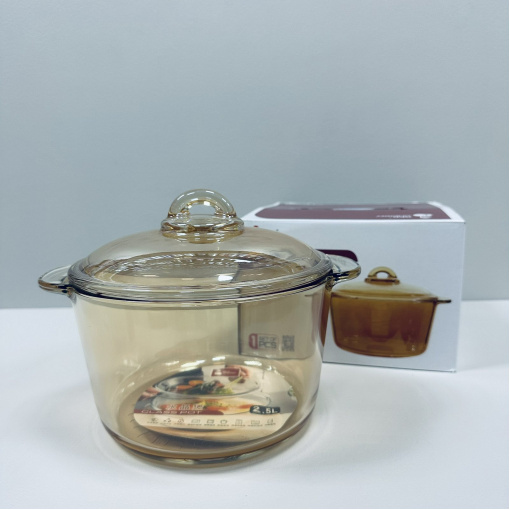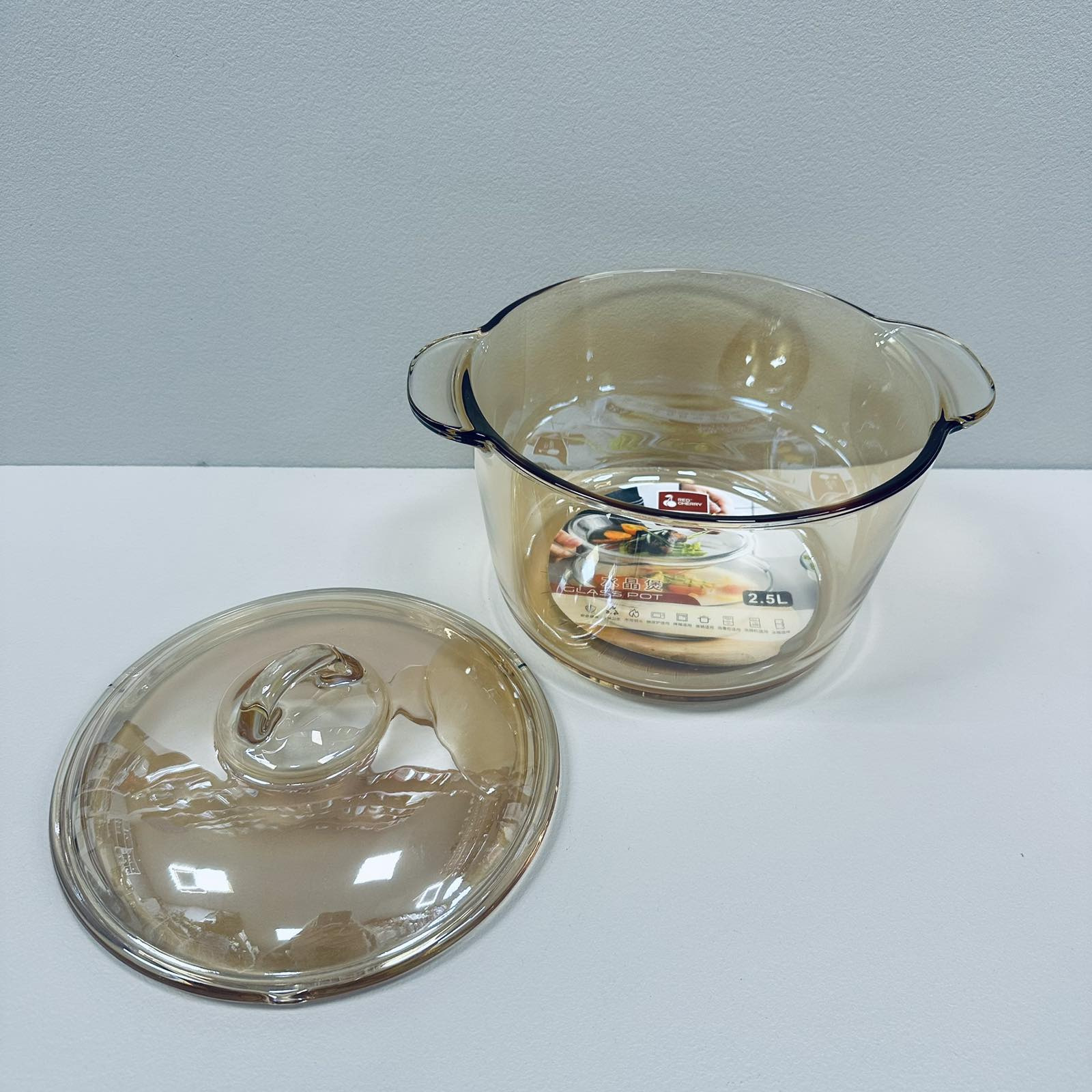 Каструля скляна жароміцна з кришкою Interos 01-1 XM BHP/SJB-2500MLB 2,5 л Золотий (23667)