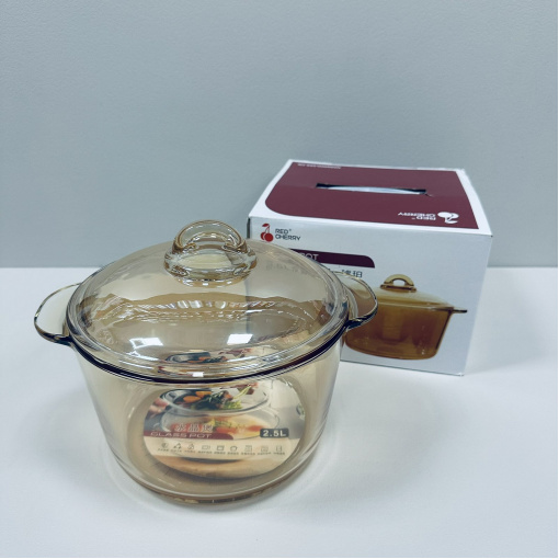 Детальні характеристики Каструля скляна жароміцна з кришкою Interos 01-1 XM BHP/SJB-2500MLB 2,5 л Золотий (23667).