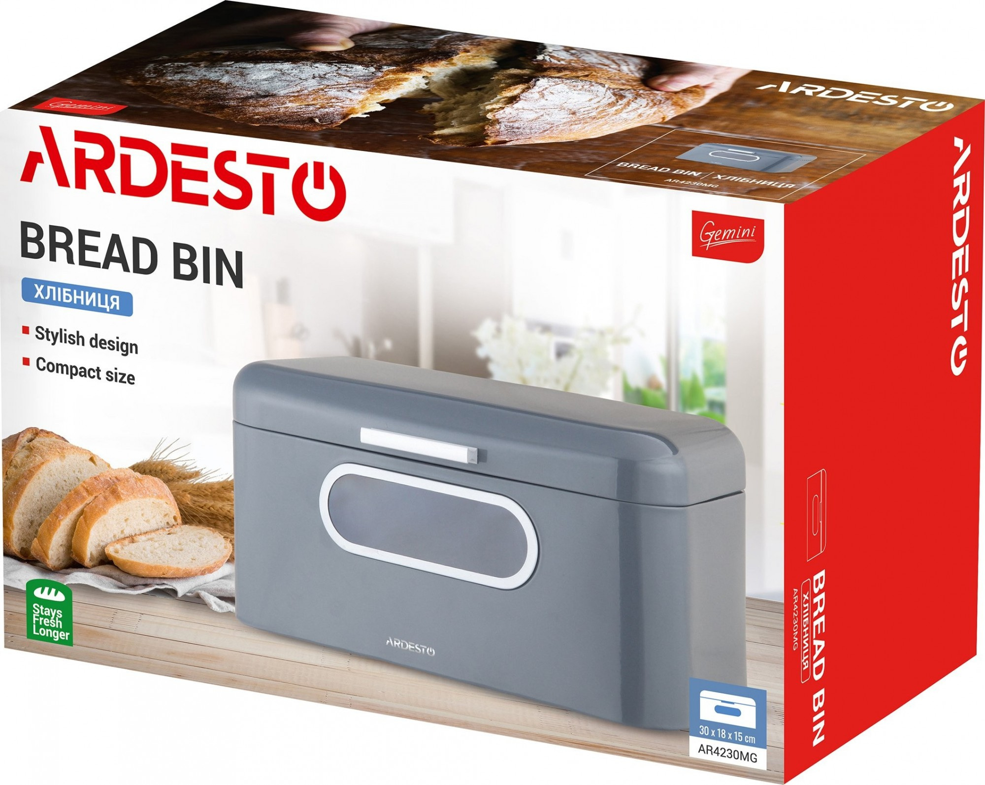 Детальні характеристики Хлібниця металева сіра 30*18*15 см Ardesto Gemini AR4230MG.