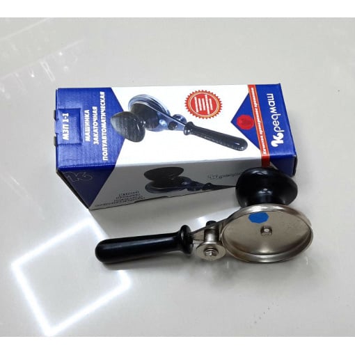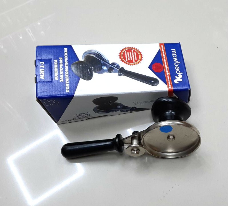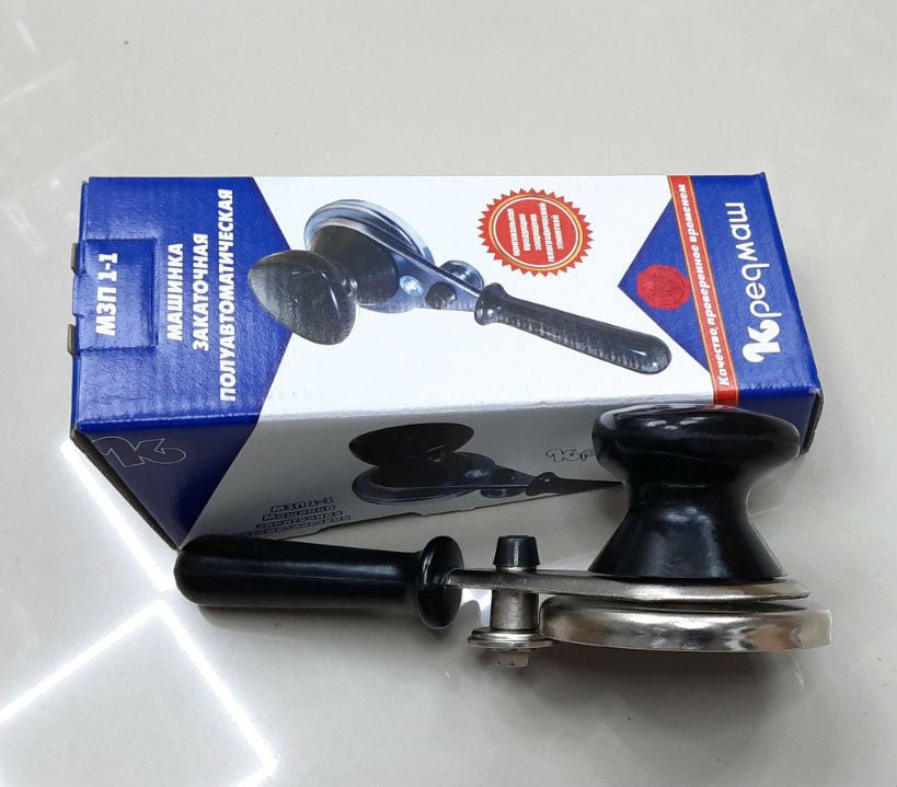 Полуавтоматические закаточные машинки для консервации Кредмаш долгое время занимают лидирующие позиции среди покупателей, что подтверждается множеством положительных отзывов. И это неудивительно: домохозяйки, работающие с таким ключом, отмечают его удобство,надежность, прочность и функциональность. Закаточный ключ — это тот товар,который должен быть на кухне каждой хозяйки. Машинка закаточная с полуавтоматическим перемещением ролика предназначена для герметической укупорки стеклянных банок при домашнем консервировании. Благодаря правильному выбору выходной позиции ролика и ограничению его перемещения исключается раздавливание горловины банки, даже, если банка находится в неопытных руках. Детали машинки изготовлены из пищевой, углеродистой стали и имеют защитно-декоративное покрытие. Ручка закаточного ключа изготовлена из пластмассы. На данный момент, модель «Кременчуг» является лидирующей на рынке. Ключ закаточный полуавтомат "Кременчуг" в коробке КЗК-У Характеристики: Материал: Пластик / Нержавеющая сталь Цвет: Черный / Стальной Тип: Закаточный ключ