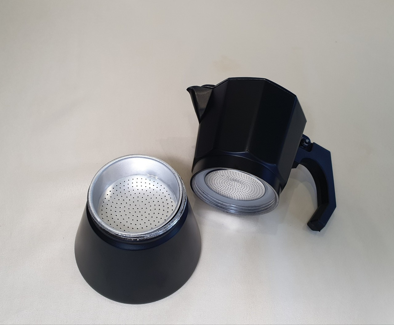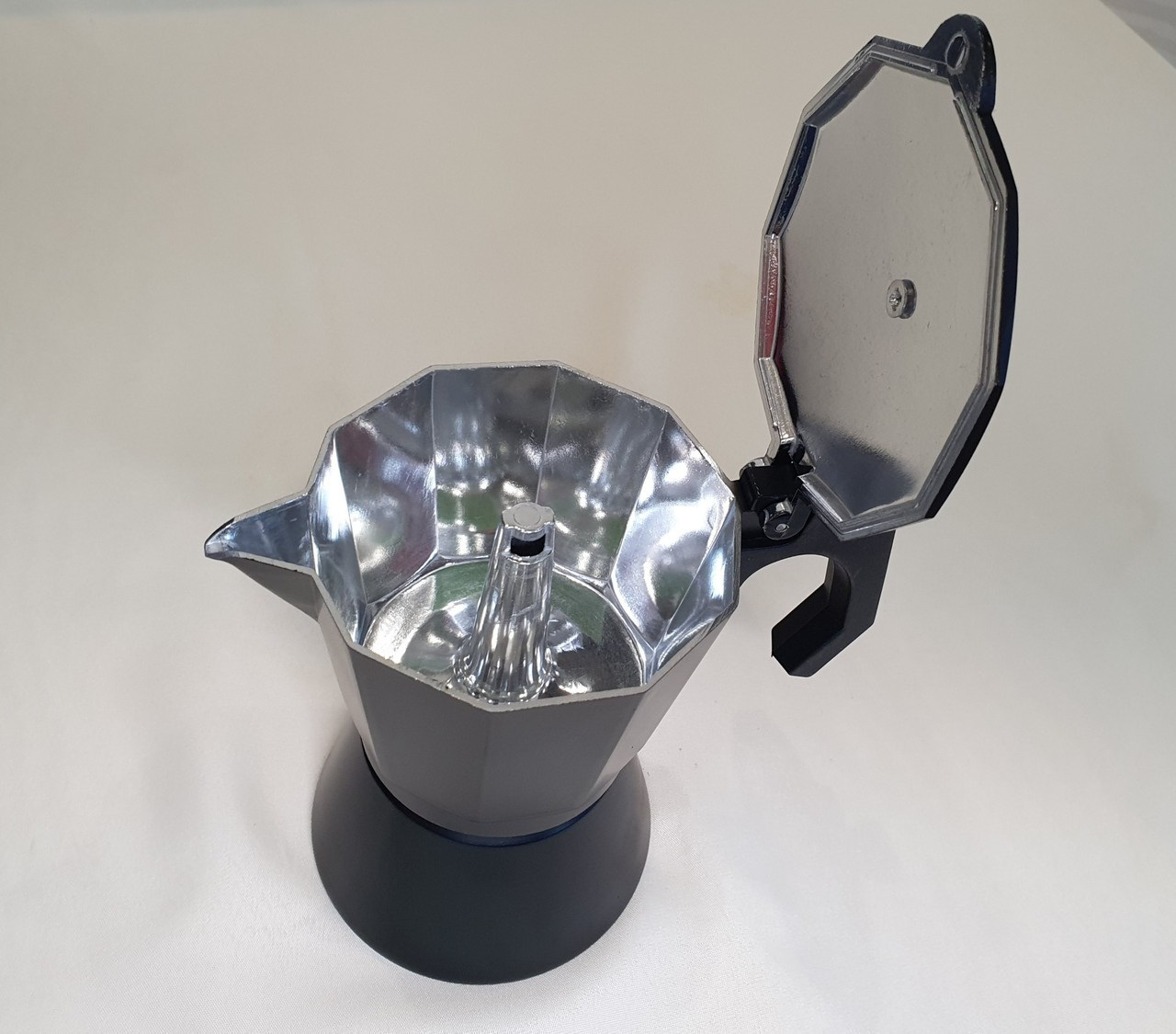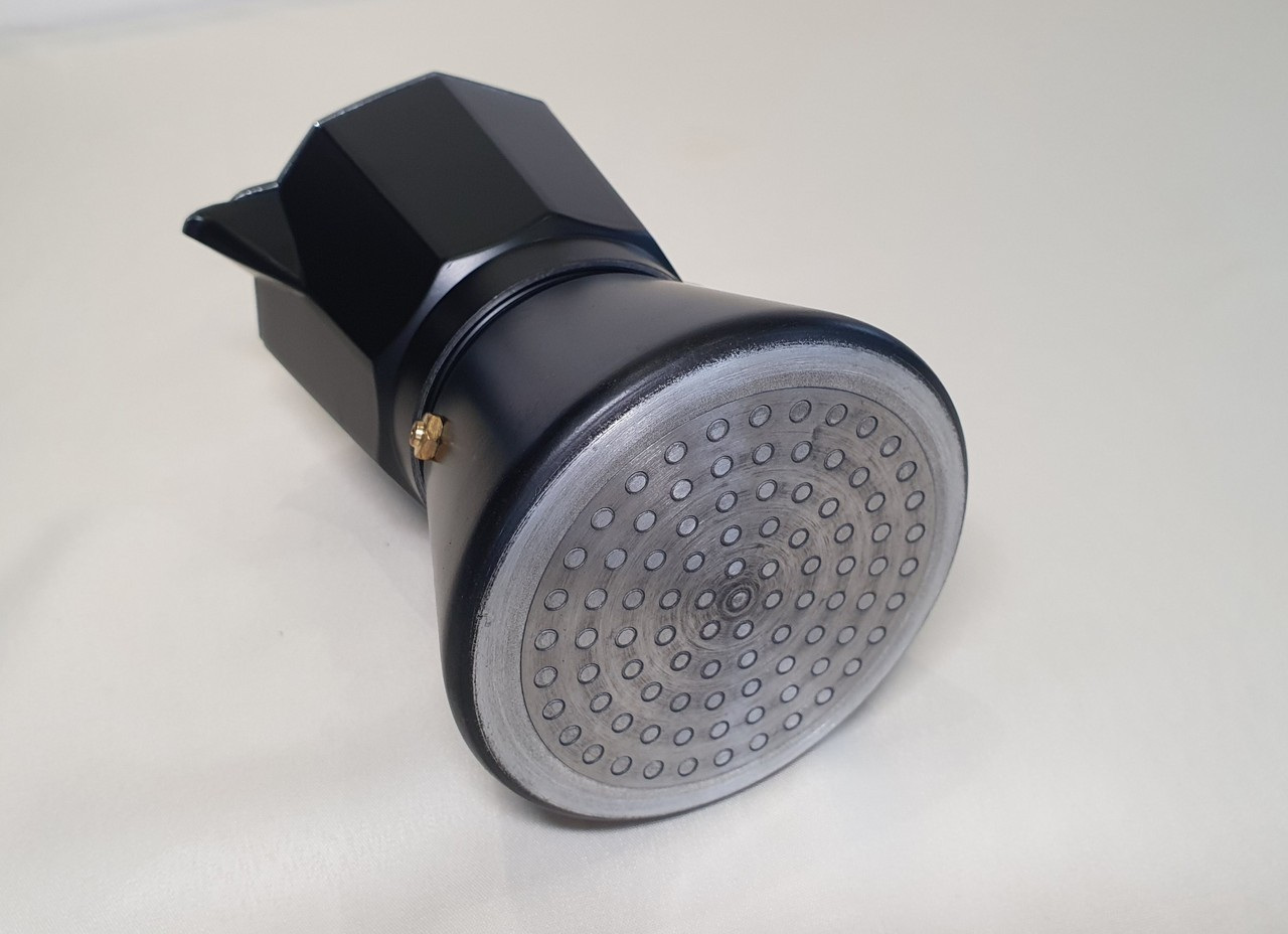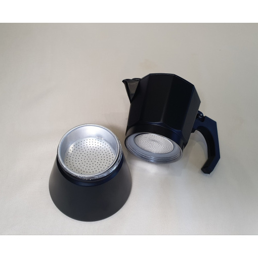 Гейзерна кавоварка виготовлена ​​з алюмінію. Посуд з алюмінію міцний і легкий. Експлуатувати просто, потрібно засипати каву та налити воду, поставити на плиту та трохи почекати. Легко очищається навіть у холодній воді. Варити можна не тільки каву, а й чай і різні трав'яні збори. Має сучасний дизайн та займає мінімум місця на кухні. Відмінний вибір для дому чи кафе/ресторанів.