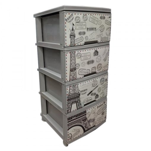 Пластиковий комод "Алеана" з декором "Ейфелева вежа" кремового кольору