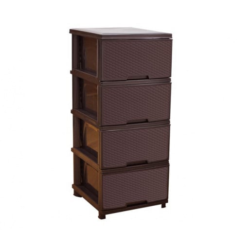 Пластиковий комод ТМ "АЛЕАНА" з декором "Ротанг" коричневого кольору.