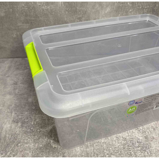 Харчовий контейнер високої якості. Харчовий контейнер для зберігання борошна, порошку, харчових продуктів, різних дрібниць.  Комплектується кришкою, яка закривається за допомогою ручок контейнера.  Призначений для використання в холодильнику, мікрохвильовці та посудомийній машині.