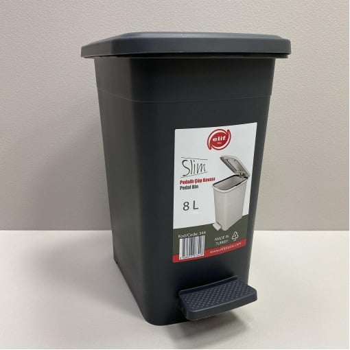 Контейнер для сміття пластиковий 8 л з педалью Elif Plastik 344   Це необхідна справа в будинку для підтримання чистоти та порядку в приміщенні. На баку внизу розташована педаль, при натисканні якої відкривається кришка, що допомагає приховати вміст усередині. Характеристика: Вид: Контейнер Призначення: Для сміття Матеріал: Пластик  Об'єм: 8 л Розмір: 25.1*19 см Висота: 31.1 см