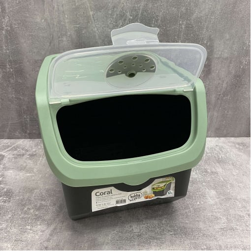 Контейнер для овочів пластиковий 12 л 23,5*32,5*23,5 см Hobby Life 02 1506 чорний з зеленим Контейнер для зберігання овочів і фруктів, з клапаном для вентиляції. Завдяки герметичності овочі і фрукти всередині контейнера зберігаються довше. Характеристика: Вид: Контейнер Матеріал: Пластик Об'єм: 12 л Розмір: 23,5*32,5*23,5 см Колір: Чорний з зеленим
