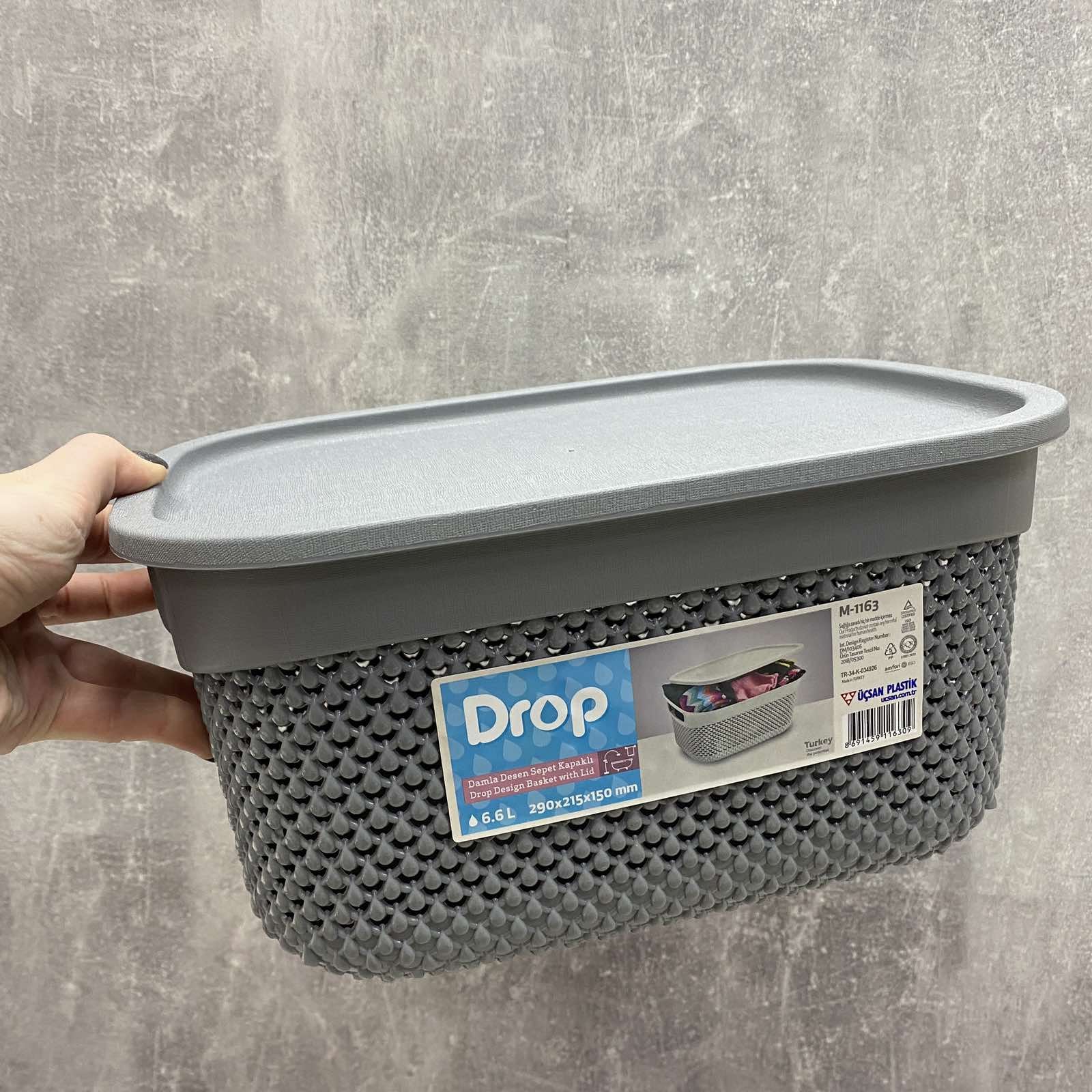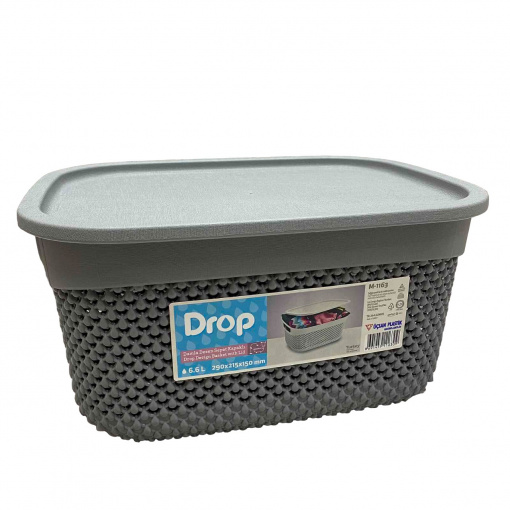 Кошик для зберігання пластиковий 6,6л Ucsan Рlastik M-1163 Кошик для зберігання з кришкою Ucsan Рlastik M-1163 6,6 л, виготовлений із гіпоалергенного матеріалу – поліпропілен Турецького виробництва. Об'єм кошика становить 6,6 л. Висока міцність матеріалу до механічних та хімічних впливів. Використовується для зберігання різних речей для дому: фруктів, текстилю, іграшок та іншого. Характеристика: Вид: Кошик Матеріал: Пластик Об'єм: 6,6 л Розмір: 29*21,5*15 см Колір: Сірий Форма: Прямокутна