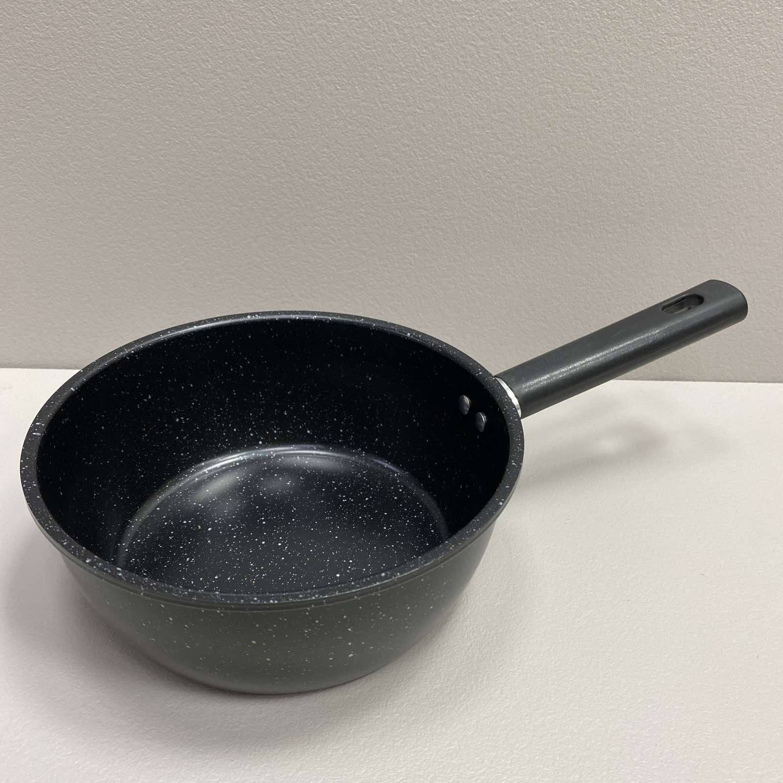 Ківш алюмінієвий 19 см 1,25 л A-Plus P-18/18-50 Ківшик без кришки із гранітним антипригарним покриттям – справжній помічник на вашій кухні. Характеристика: Вид: Ківш Матеріал: Алюміній Об'єм: 1,25 л Діаметр: 19 см Форма: Кругла Висота: 7,3 см