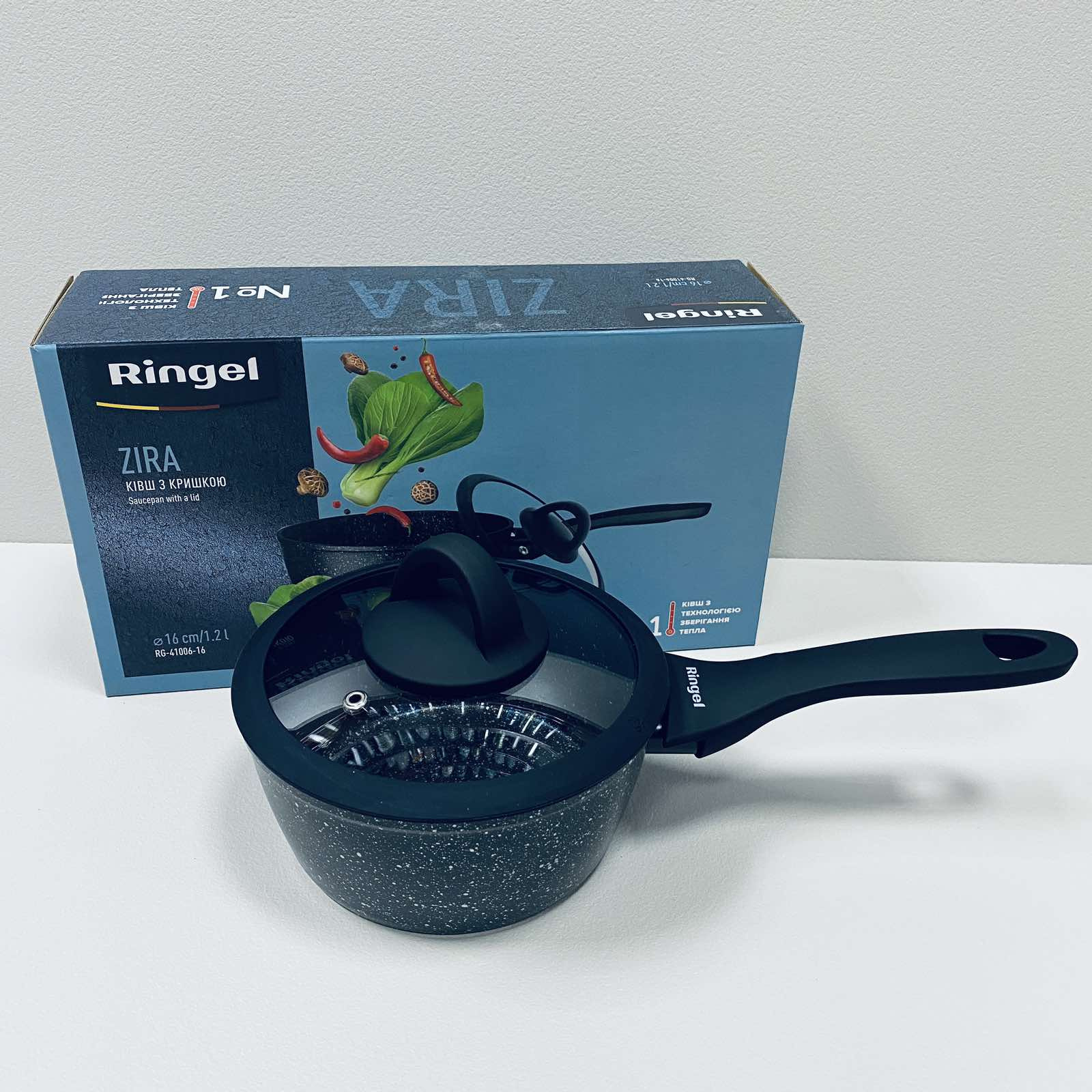 Детальні характеристики Ківш алюмінієвий із скляною кришкою 16 см 1,2 л Ringel Zira RG-41006-16.