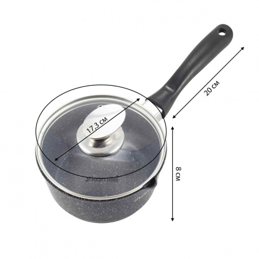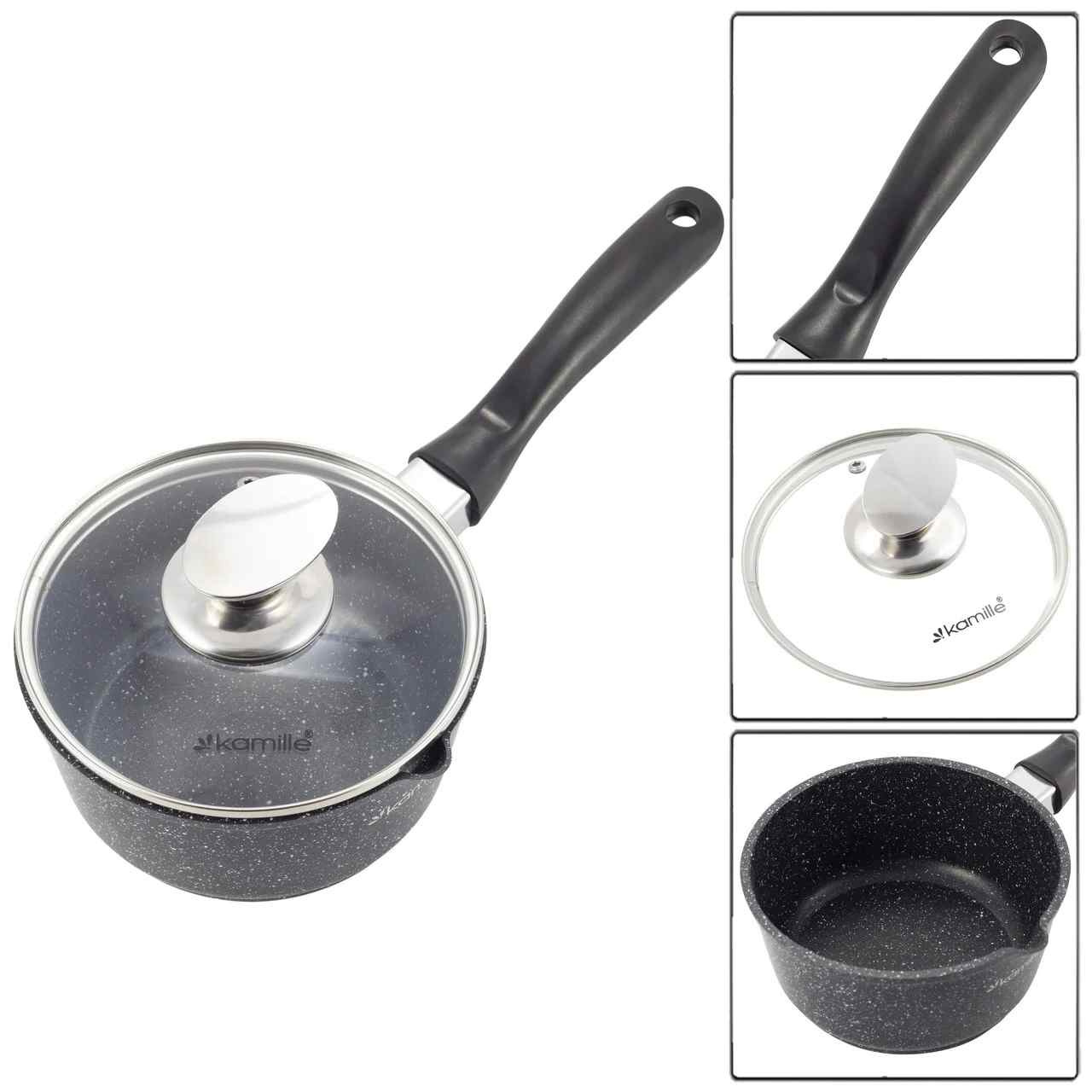 Ківш з кришкою та мармуровим покриттям з литого алюмінію 16 х 8 см Kamille KM-4436