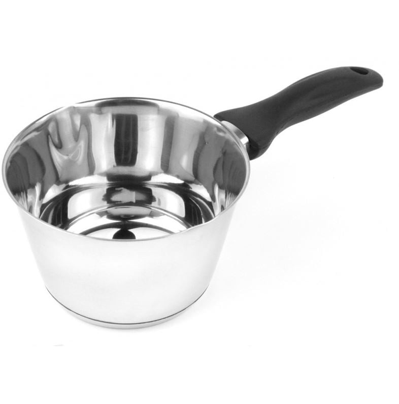 Ковш виготовлений з нержавіючої сталі високої якості. Цей метал НЕ вступає в реакцію з їжею під час приготування, а значить не змінює її смак і запах. Легко очищается навіть в прохолодній воді. Має сучасний дизайн. Однослойное дно У такого господарського ковша зручна широка ручка.
