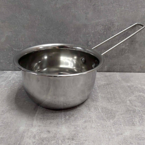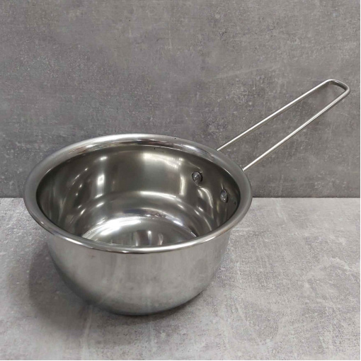 Ківш виготовлений із нержавіючої сталі високої якості. Цей метал не вступає в реакцію з їжею під час приготування, а значить не змінює її смак та запах. Легко очищається навіть у холодній воді. Має сучасний дизайн. Одношарове дно. Такий господарський ковш має зручну широку ручку.