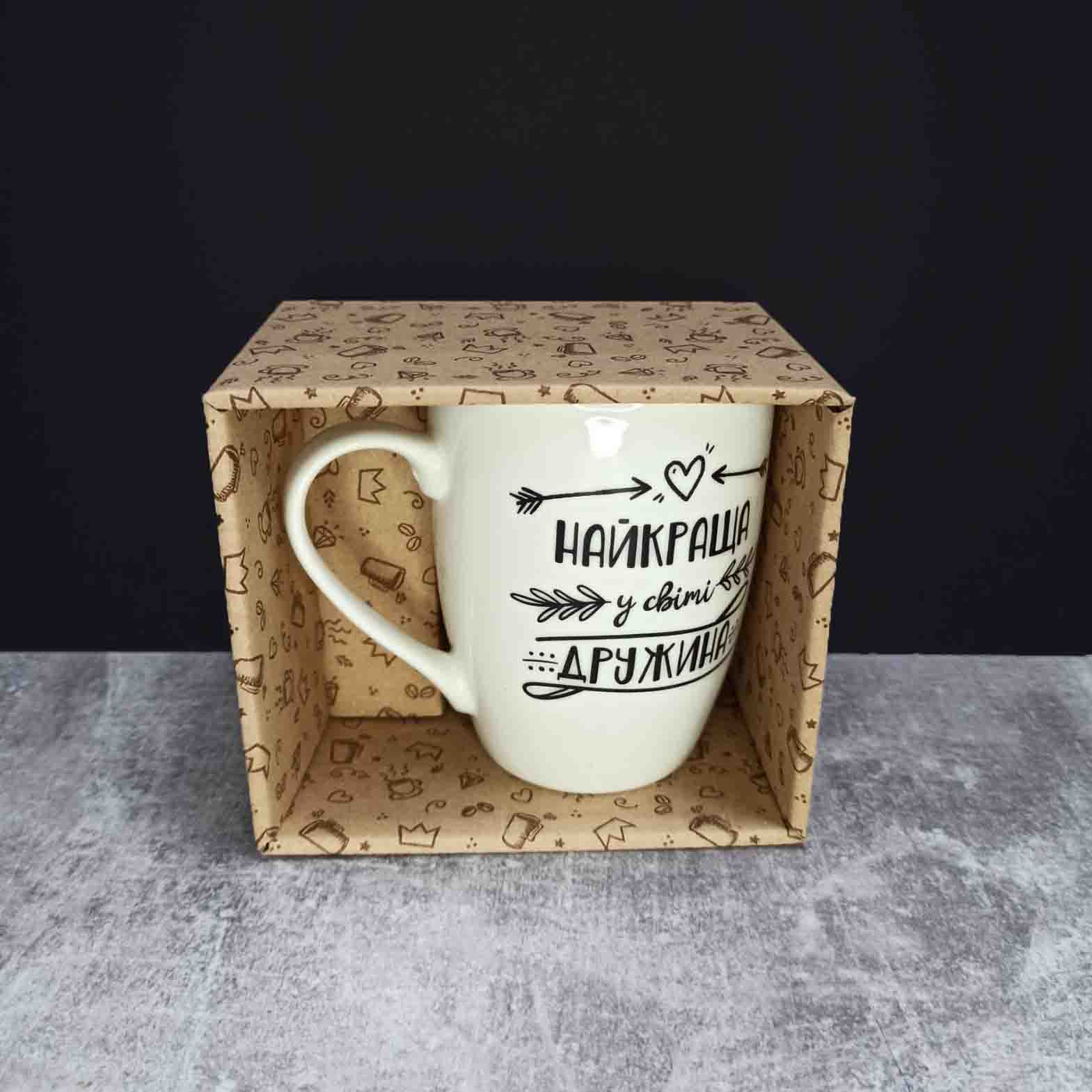 Чашка має дизайнерську, крафтову подарункову упаковку. Особлива форма коробки дозволяє подарувати чашку, без додаткової обгортки та оформлення!