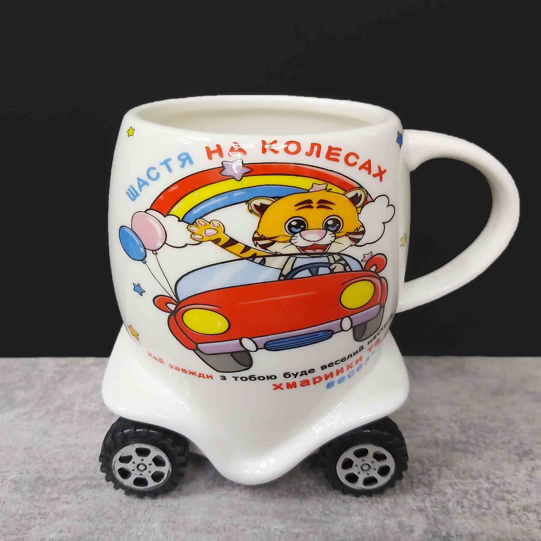 Кружка подарункова 400 мл Машинка на колесах Helios 2728 "ХМАРИНКИ ТА ВЕСЕЛКА"